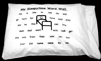 The Sleepytime Word Wall pillowcase is an excellent way to reinforce what they are learning while having fun as they get tucked into bed.